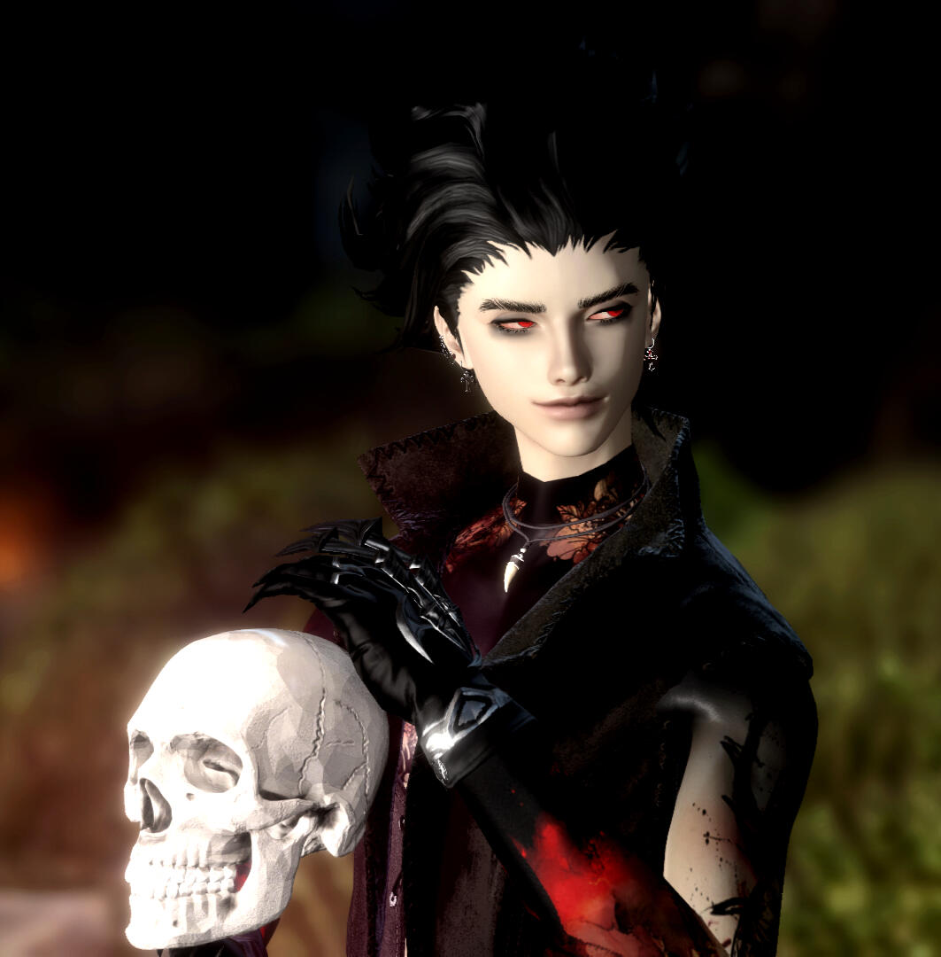 The. Vampire . Who . Desires . IT . ㅤALLㅤ . Chilled breath. Cold tongue. Grey, lifeless skin. A voice that barely rises above a whisper. Something is… off about him. Born to a Hyur father and a Viera mother, both devoted occultists. They made their home in Haukke Manor, where rituals were a daily reality. He was present for them all, rituals involving voidsent, blood, and dark pacts. His parents sought to bind the child to their work, to create a hybrid that could grant them power and prolong their lives beyond death. A blessing. A curse. He gained command over the dead, yet thirsts for blood as payment for the pact forced upon him. Neither fully human nor voidsent, yet he found a strange joy in this existence, in the weight and freedom it carried. He fell in love with stories, with myths and creatures that only existed on the page. Life itself became something he observed through literature, shaping himself in its image. Childish? Perhaps, but not far removed from the reality he had been dealt. His fascination with the occult is less about devotion and more about curiosity, what secrets might he uncover for himself. Like his parents, he is selfish, though patient. He wants everything, knowledge, power, control. But he is willing to wait. He can play the long game, and he will.